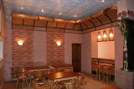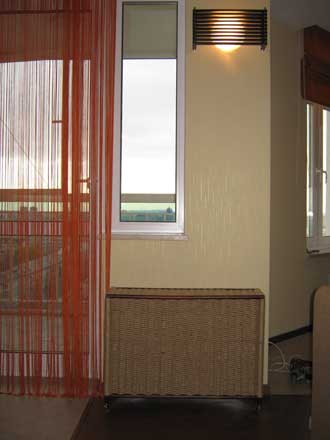 интерьер кафе в комплексе «Жемчужина» кафе «Нерусская кухня» Комната отдыха Кухонная зона Оформление хозяйственной части дома Экран на батарею заплетенный джутовой веревки. Цена 2 200 руб. м.кв.